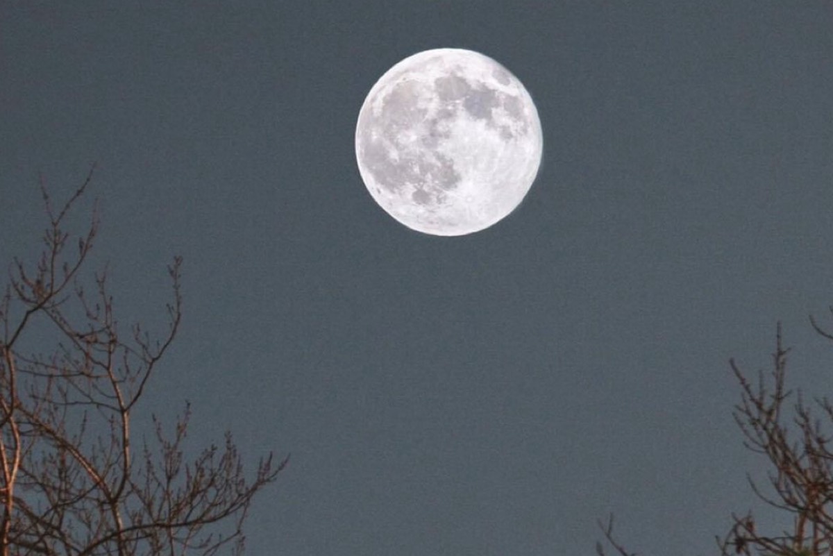 وبيّن أن القمر يتحرك الآن على الجانب المقابل تمامًا من الشمس في السماء، لذلك نرى كل جانبه النهاري وبالتالي يبدو لنا مضاءً تماماً مثل كرة فضية لامعة.