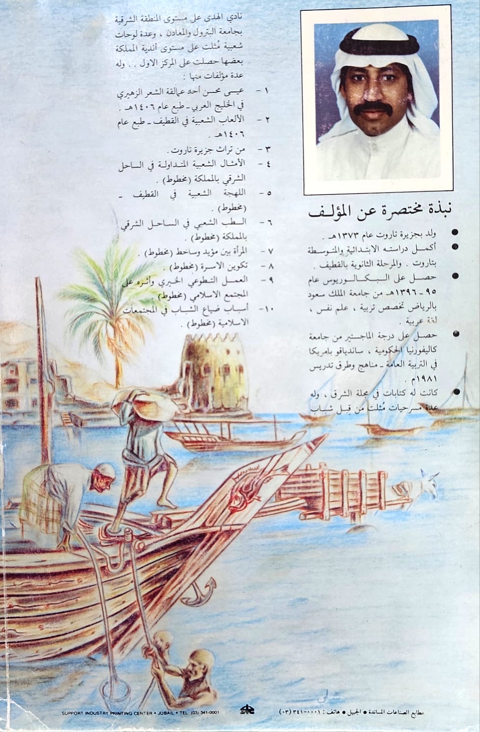 كنت شاهدًا على بعض مؤلفاتك المبكرة، لأنك وهبتني شرف رسم أغلفة إصدارات كتبك الأولى، بدءًا بغلاف كتاب «من تراث جزيرة تاروت - 1986» والمزوّد بلقطات من عدستي وغيري من المصورين، ومرورًا بثلاثة كتب أخرى: «الأمثال الشعبية في الساحل الشرقي للمملكة العربية السعودية - 1987»، و«أسباب ضياع الشباب في المجتمعات الإسلامية - 1987»، و«شعراء القطيف المعاصرون - 1994». كتب قيمة أسهمت بتعريف عمق حضارة المنطقة وآدابها ومنطق أهلها الأصيل وتراثهم اللامادي الغني بالفكر والمعرفة. وفي ذات الوقت ساعدتني شخصيًا لترويج اسمي فنيًا.