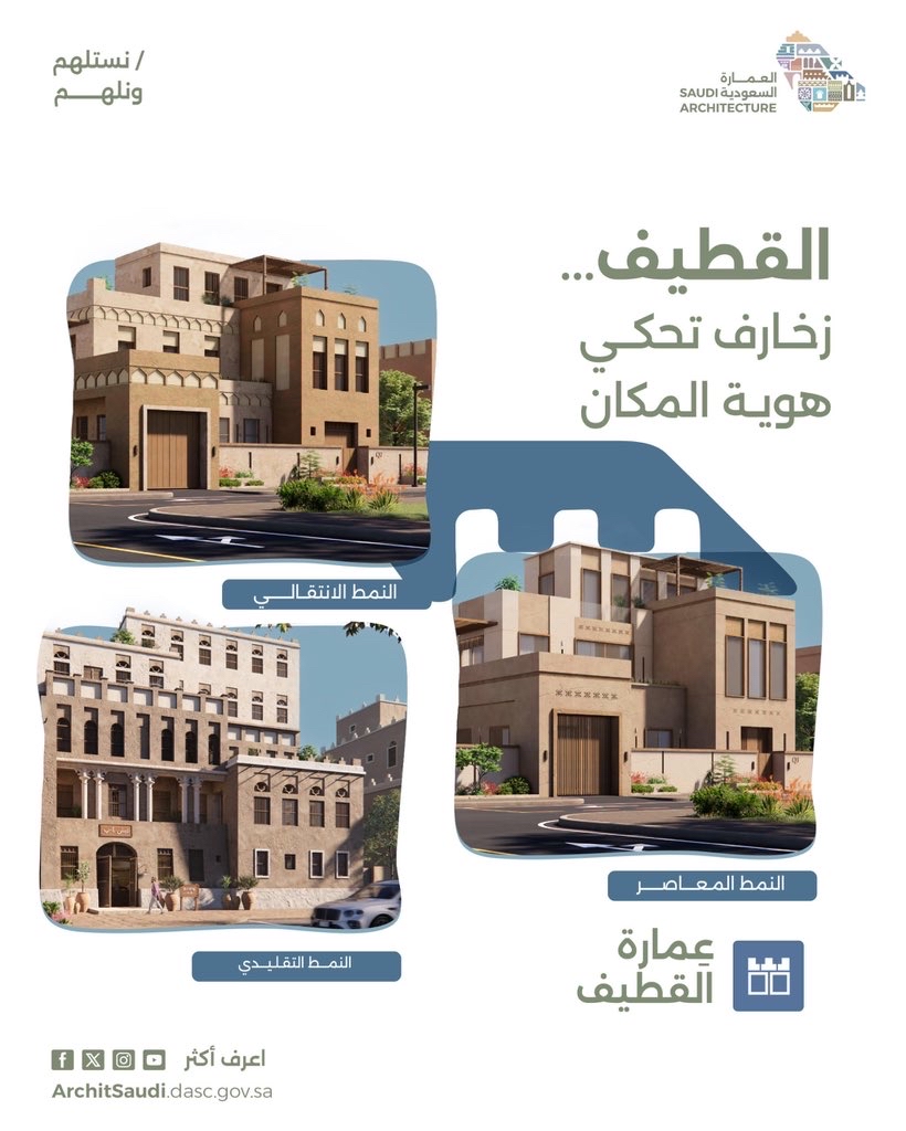 وتندرج هذه الخطوة ضمن خريطة العمارة السعودية التي أطلقها، صاحب السمو الملكي الأمير محمد بن سلمان بن عبدالعزيز آل سعود ولي العهد رئيس مجلس الوزراء رئيس اللجنة العليا للموجهات التصميمية للعمارة السعودية - حفظه الله -، في مارس الماضي، متضمنة 19 طرازًا معماريًا مستوحى من الخصائص الجغرافية والثقافية للمملكة، بهدف تعزيز الهوية العمرانية وتحسين جودة الحياة وتطوير المشهد الحضري بما يتوافق مع مستهدفات رؤية 2030.