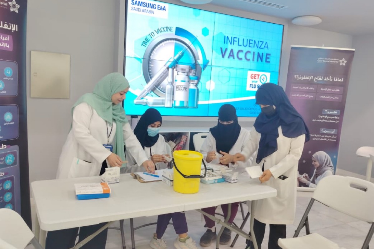 وبالتوازي مع هذه الجهود التوعوية، انتقلت الخدمات الوقائية إلى خارج أسوار المنشآت الصحية، حيث نفذ مستشفى القطيف المركزي، ممثلاً بفريق تجربة المريض وقسم التمريض، حملة ميدانية للتطعيم ضد الإنفلونزا الموسمية.