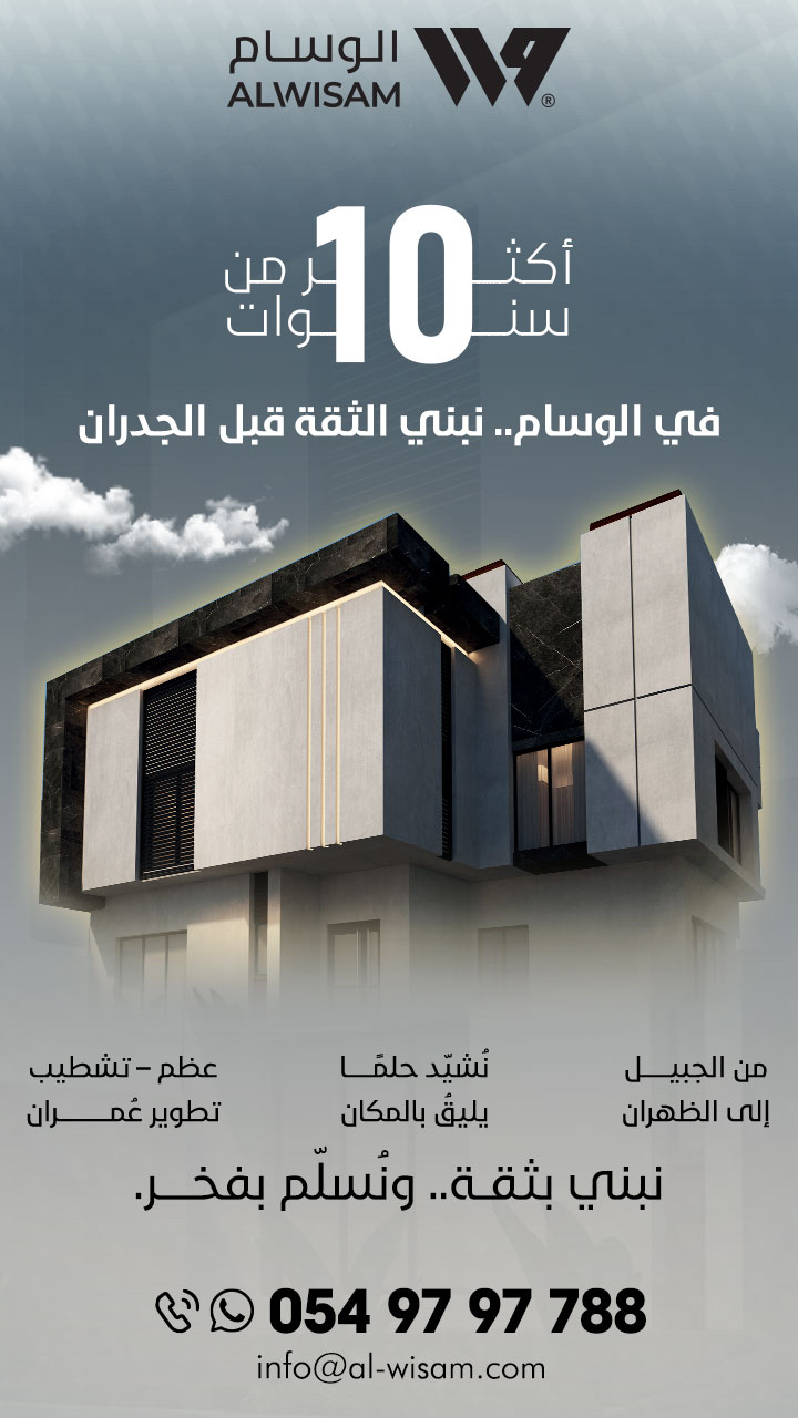 بخبرةٍ تمتدّ لأكثر من 10 سنوات، الوسام يبني الثقة قبل الجدران، ويُشيّد حلماً يليق بالمكان
