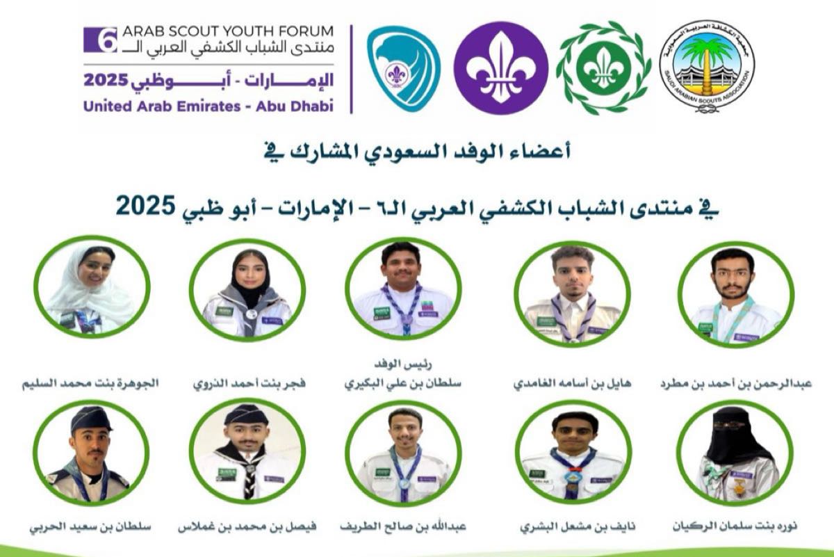 تشارك جمعية الكشافة العربية السعودية في المنتدى الكشفي العربي السادس للشباب، الذي يُعقد في أبوظبي خلال الفترة من 9 إلى 14 نوفمبر 2025 م.