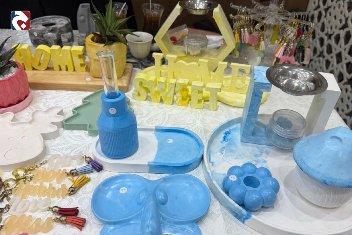 وأكدت أن العمل الحرفي الدقيق يتطلب تغذية بصرية مستمرة وخبرة تراكمية، مشيرة إلى أن مراحل الإنتاج تمر بصب المواد، والتجفيف، والعزل، ثم الصنفرة، وقد يستغرق إنجاز القطعة الواحدة وقتاً طويلاً بحسب التفاصيل.