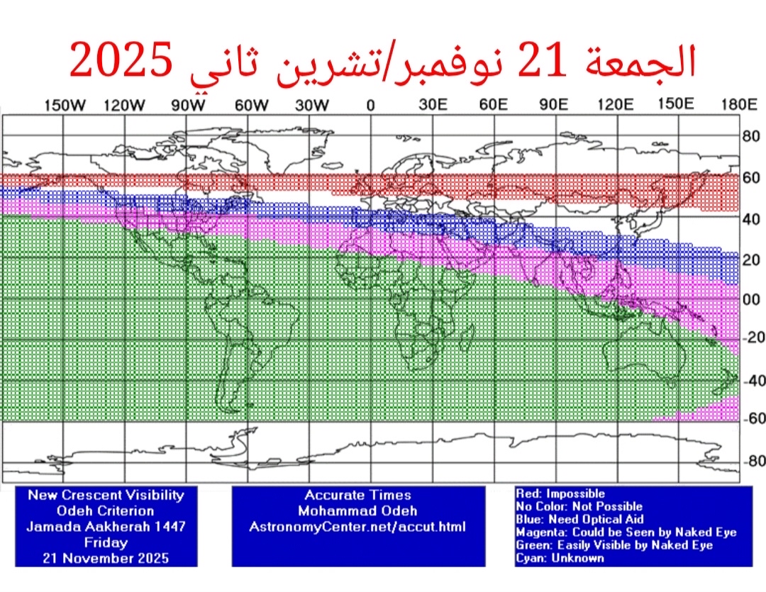 وأكد أن الرؤية بالعين المجردة ستكون ”غير ممكنة“ في أفق المنطقة وعموم دول الخليج مساء يوم الجمعة 21 نوفمبر 2025 م، مما يستدعي الاعتماد على الوسائل التقنية.