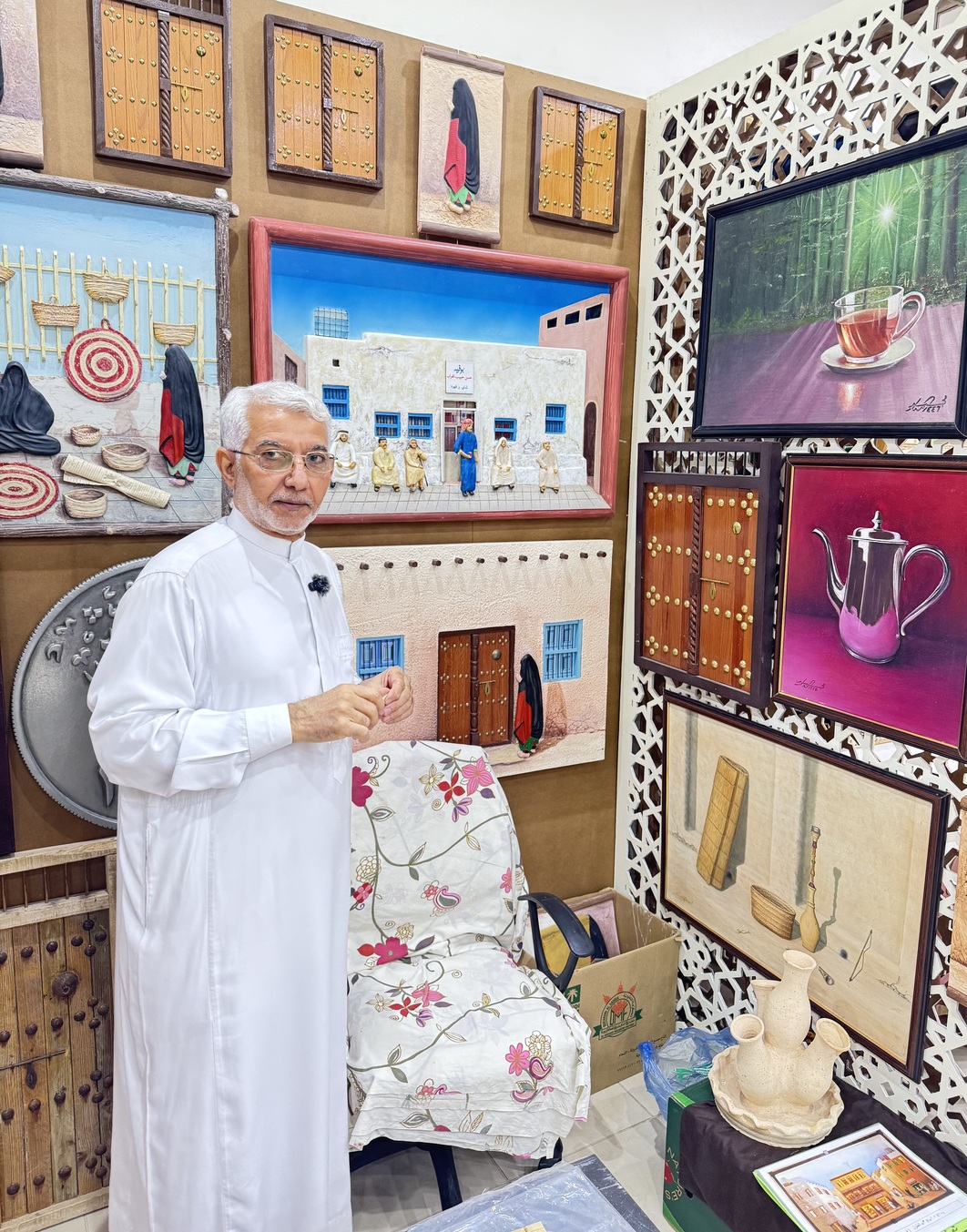 جسّد الحرفي مجيد الدار ملامح التراث القطيفي في لوحاته ثلاثية الأبعاد التي يشارك بها ضمن فعالية “منتجون” للأسر المنتجة، التي تنظمها جمعية القطيف الخيرية بالشراكة مع مكتب الضمان الاجتماعي في مقر الجمعية بحي البحر.
