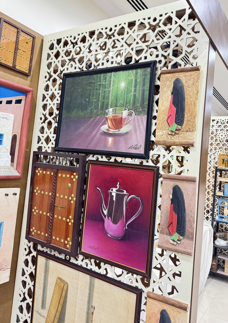 واستحضر الدار خلال حوار مع "جهات الإخبارية"، “قهوة الغراب”بروح جديدة عبر خامات تجمع بين الخشب والجبس وإعادة تدوير البلاستيك، مقدمًا قطعًا فنية تجسّد سوق الخميس، والعجوز القطيفية بردائها الأحمر الذي اشتهرت به نساء القطيف في سبعينيات القرن الماضي، إلى جانب لوحات تشكيلية تناولت الطبيعة الصامتة.