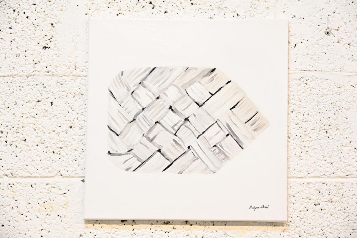 وانتقلت الفنانة في عملها الثاني إلى فضاء المدرسة التأثيرية لتسلط الضوء على موروث ”الخوص“ والسعف المجفف، مستعيدة تاريخاً عريقاً من الحرف اليدوية التي حولت خامات البيئة المحلية إلى قطع نفعية وجمالية لازمت البيت الأحسائي وشكلت جزءاً أصيلاً من هويته.