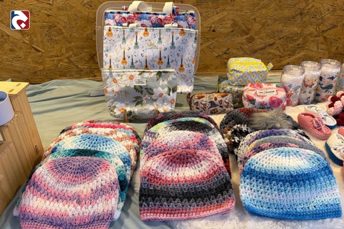 استعرضت تشكيلتها الشتوية من منتجات الكروشيه، التي تتضمن القبعات، ال ”سكارفات“، وملابس الأطفال حديثي الولادة، بالإضافة إلى ال ”لحافات“، موضحة أن هذه القطع تحظى بإقبال كبير نظراً لجودتها ودفئها، إلى جانب تميزها بلمسات فنية خاصة.