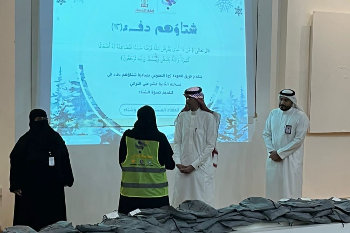 أطلق ”فريق ج التطوعي“ النسخة الثانية عشرة من مبادرته السنوية لتكريم عمال النظافة، تحت شعار ”شتاؤهم دفء“، وذلك في قاعة هجر بأمانة الأحساء.