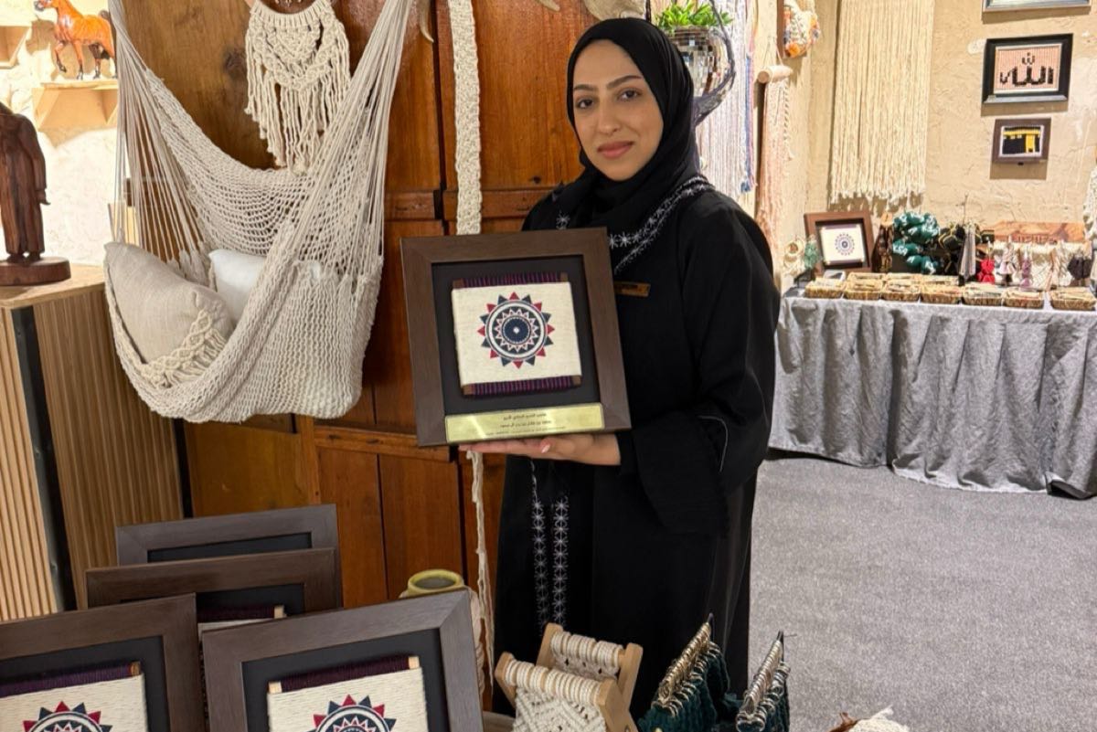 وانفردت الحرفية بتقديم دروع فنية مصنوعة يدوياً بالكامل، استوحت نقوشها وتصاميمها من ”الرواشن“ القديمة، مستندة في دقة تفاصيلها التاريخية إلى مراجع بحثية موثقة للمؤرخ إسماعيل هجلس، مما منح أعمالها بعداً توثيقياً وعمقاً ثقافياً فريداً.
