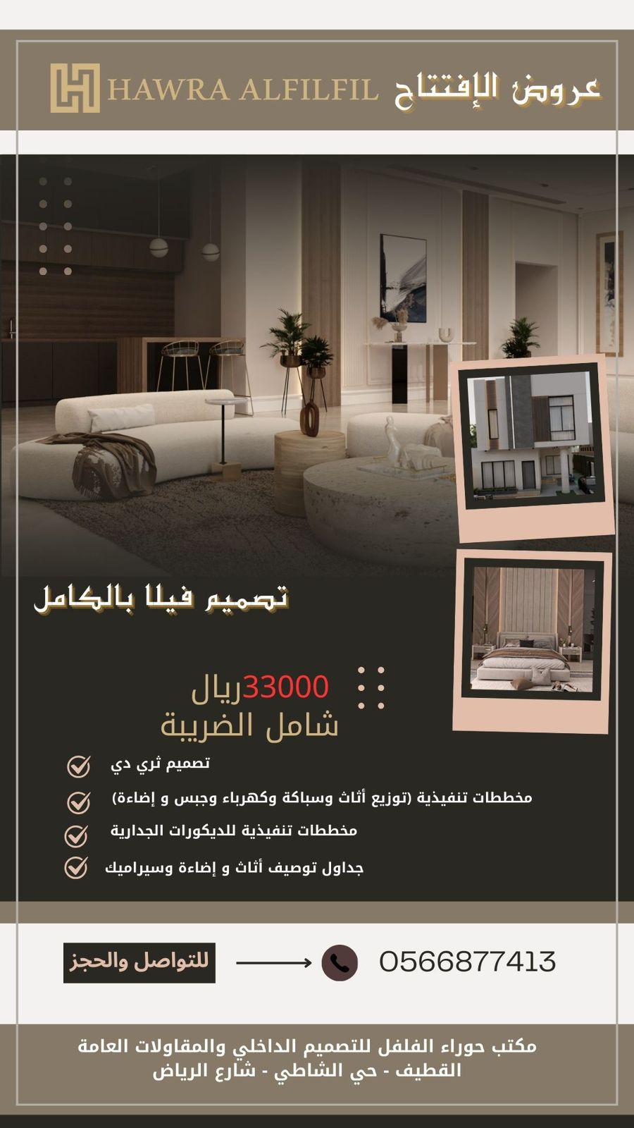 مكتب المهندسة ”حوراء الفلفل للتصميم الداخلي“