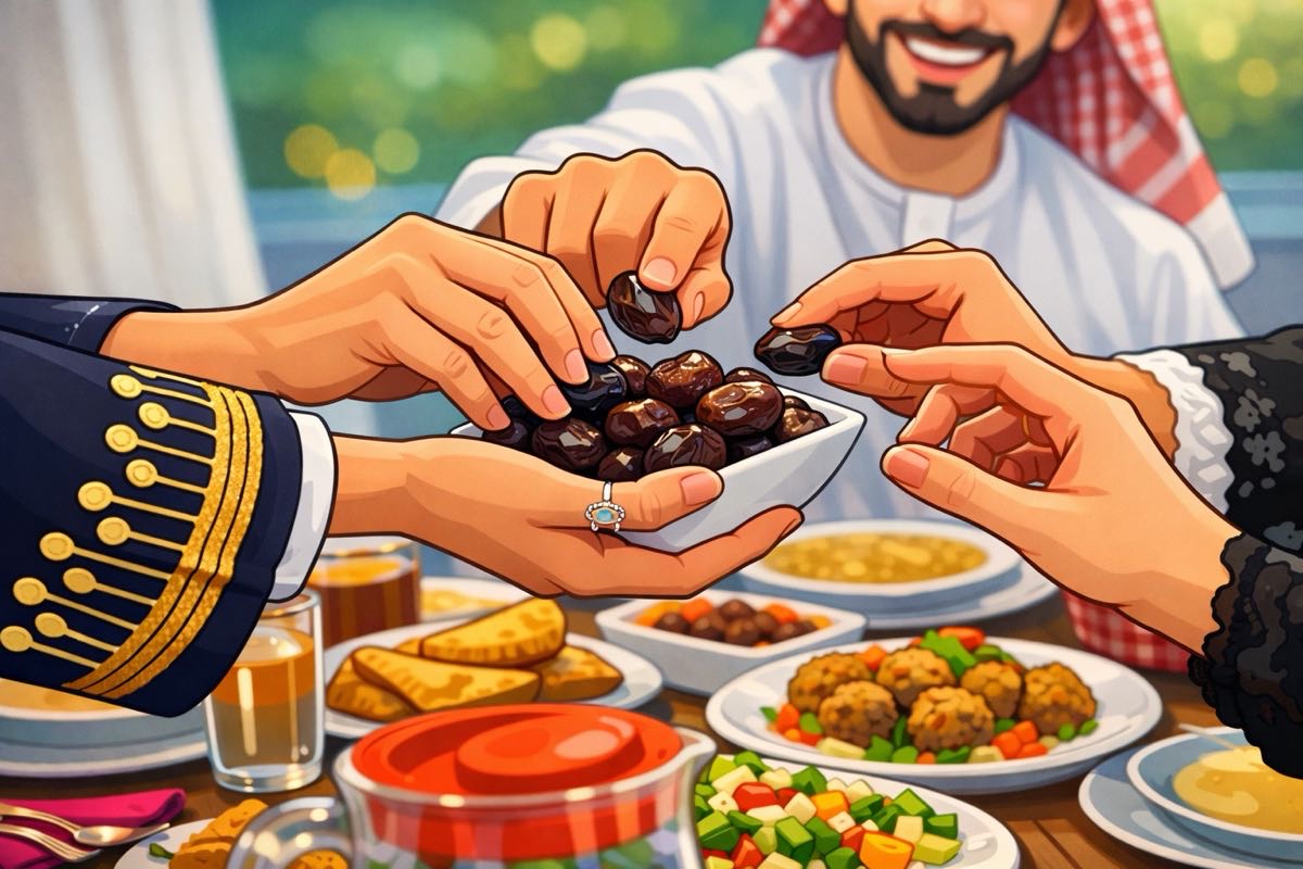 تكاثر الأيدي أُسريًا: اجتماع الأسرة حول مائدةٍ واحدة علامة على الترابط؛ ولهذا نحب شهر رمضان لاجتماعنا على وجبةٍ في وقتٍ محدد، بخلاف بقية الشهور حيث تختلف أوقات الوجبات بين أفراد الأسرة.