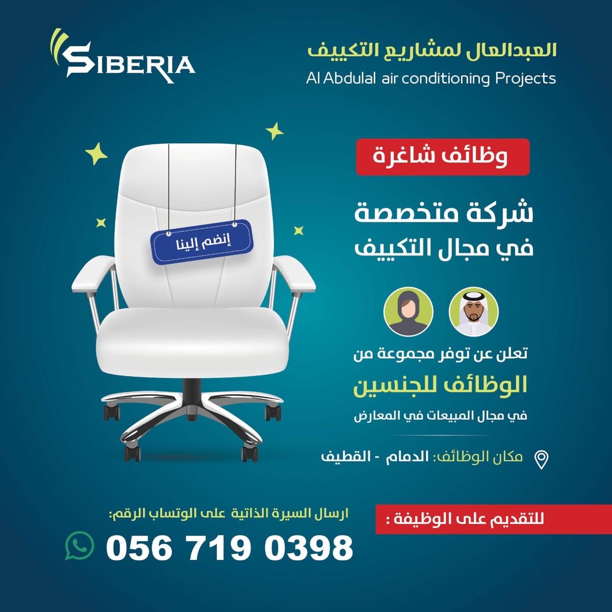 تعلن شركة العبد العال لمشاريع التكييف، المتخصصة في مجال التكييف، عن توفر عدد من الوظائف الشاغرة للجنسين، وذلك للعمل في مجال المبيعات داخل المعارض.