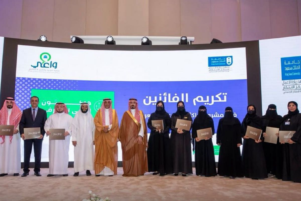 وجاء التتويج خلال الحفل الختامي الذي رعاه رئيس الجامعة المكلف، مثمناً الشراكة الفاعلة بين مركز ريادة الأعمال وجمعية ”واعي“ في استخراج الكنوز المعرفية وتحويلها لمنتجات.