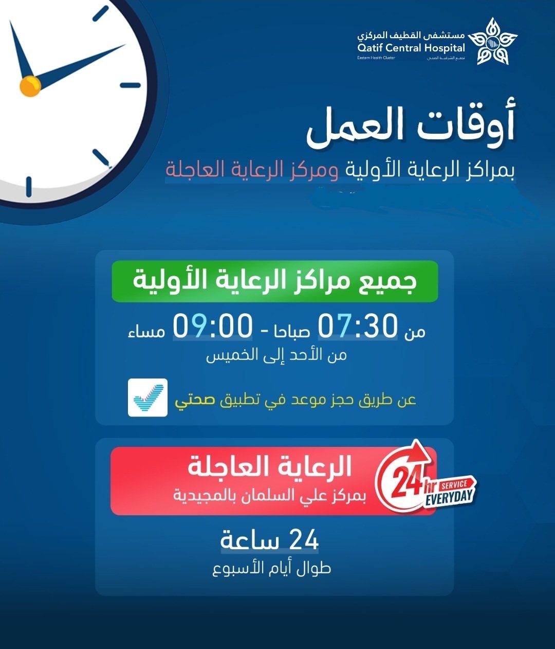 ابتداءً من الغد.. تعرف على أوقات العمل الجديدة بمراكز القطيف الصحية