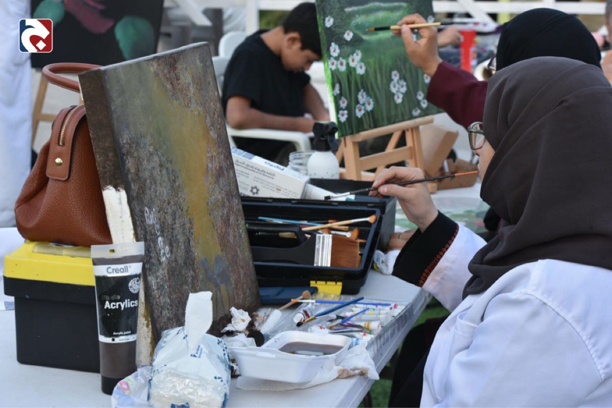 وأضافت أن المشاركين نوعوا أدواتهم بين الألوان الزيتية والمائية والأكريليك، وصولاً إلى توظيف خامات البيئة بابتكار، مستشهدة بتجربة تحويل الكرتون العادي إلى أوراق شجر ولوحات إبداعية.