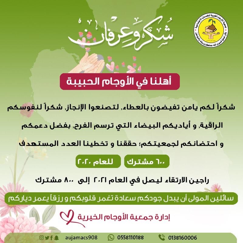 وأوضحت الجمعية أن الرقم المستهدف قد يبدو بسيطًا لدى الجميع، وهو بالفعل كذلك قياسا بعدد سكان بلدة الأوجام، لكن قياسا بعدد المشتركين في الجمعية منذ تأسيسها يصبح الرقم تاريخيا.