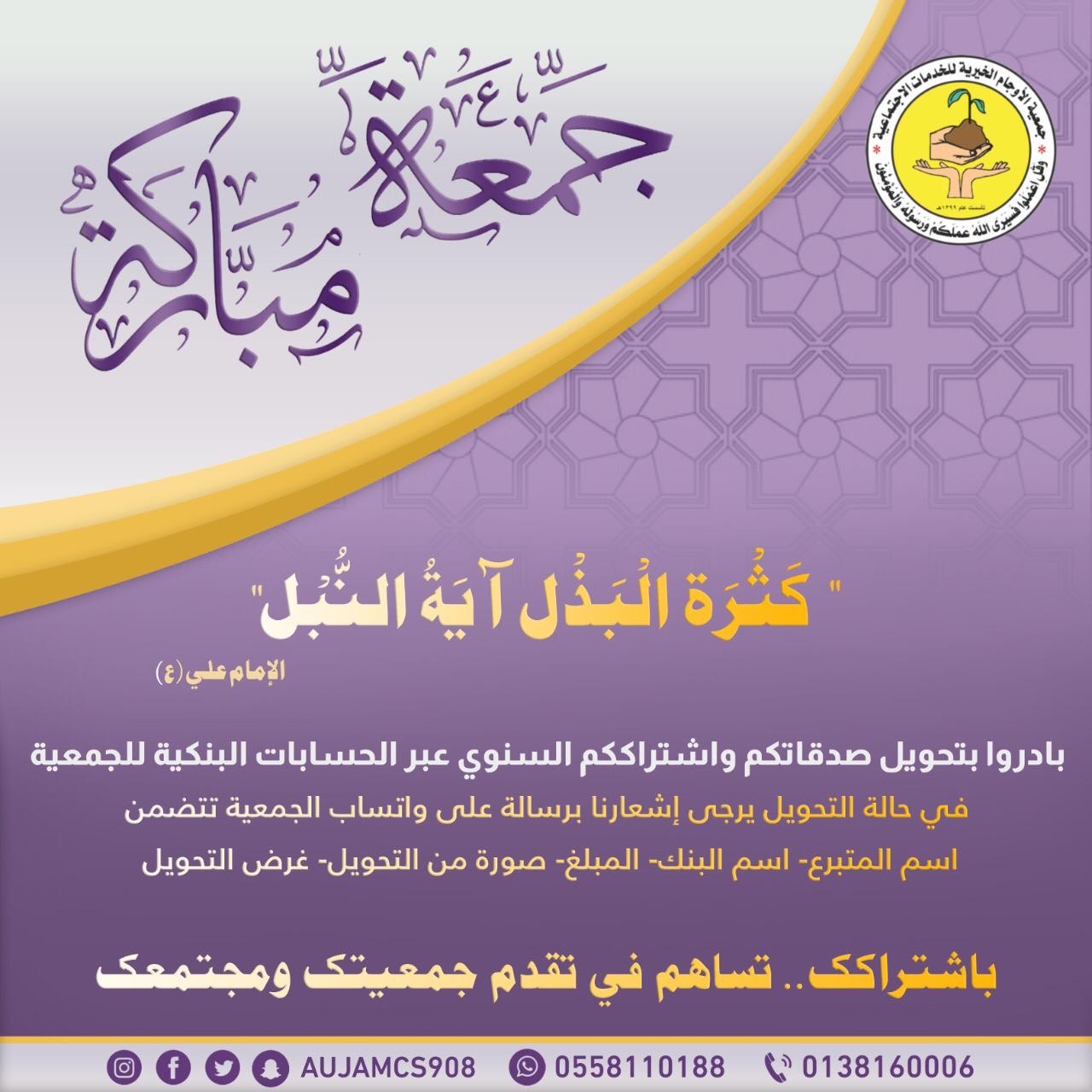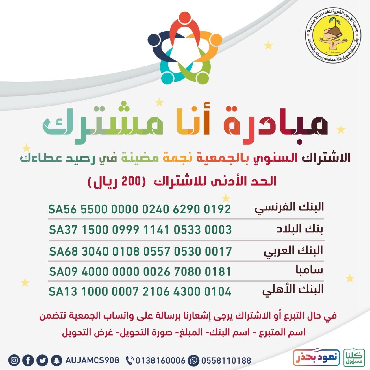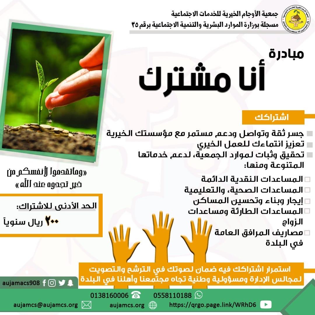 أطلقت خيرية الأوجام، مبادرة هامة لحث الأهالي على الاشتراك السنوي بالجمعية، حملت عنوان ”أنا مشترك“.