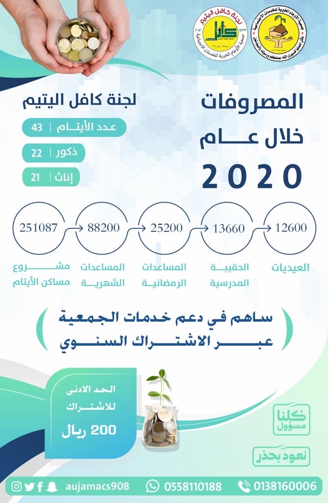 وكانت خدمات الجمعية للعام 2020، حاضرة في صميم المبادرة عبر منشوراتها المتعددة، ومقاطعها المرئية، التي أضاءت على مصروفات هامة مثل: مشروع مساكن - المتضررون من جائحة كورونا - كافل اليتيم وغيرها الكثير.
