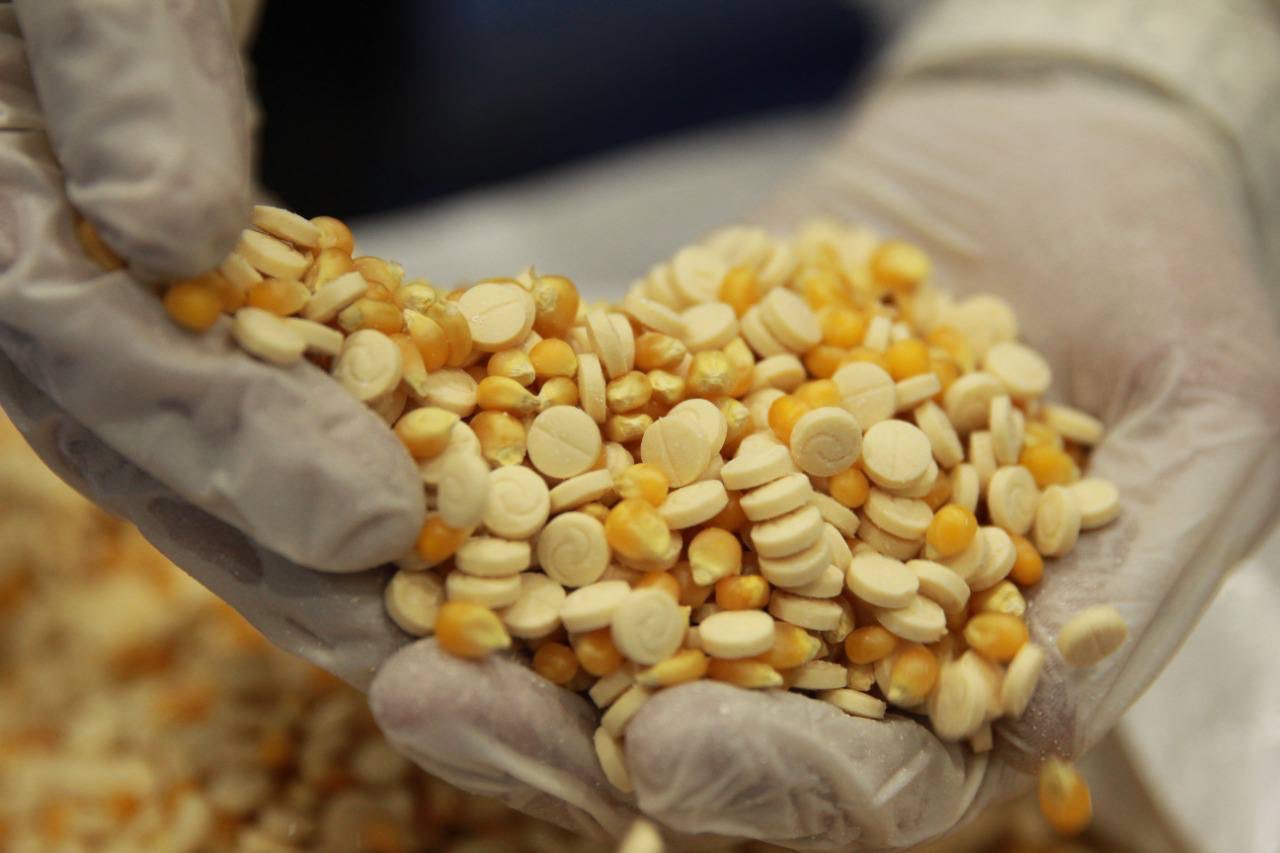 صرّح المتحدث باسم المديرية العامة لمكافحة المخدرات الرائد محمد النجيدي بأن المتابعة الأمنية المستمرة لنشاطات الشبكات الإجرامية، التي تستهدف أمن المملكة وشبابها بالمخدرات، أسفرت عن إحباط محاولة تهريب كمية كبيرة من أقراص الإمفيتامين مهربة إلى المملكة داخل شاحنة محملة بحبوب الذرة عبر منفذ البطحاء، بالتعاون مع الجانب الإماراتي، والتنسيق مع هيئة الزكاة والضريبة والجمارك، ووفق خطة أمنية محكمة، تم ضبط 1,531,791 قرص إمفيتامين مخدر، بحوزة شخصين، مواطن ومقيم سوري، بمدينة الرياض.