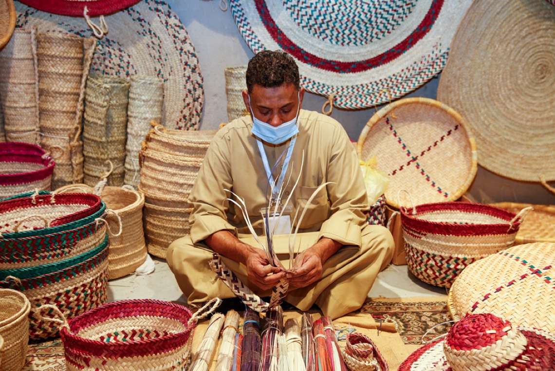 في الفريج التراثي بقلعة الاحساء المبدعة يتواجد الحرفي حبيب الفرحان ”43عاما“ ليروي قصة نجاحه مع الخوصيات، ويذكر انه امضى في هذه الحرفة والتي تعلمها من عمه محمد الفرحان أكثر من 7 سنوات، ولازال يعمل بها ولديه الاستعداد لتعليمها من يرغب بذلك من أبناء هذا الجيل، مشيراً إلى انه يستخدم الخوص ”سعف / أوراق النخيل“ والابرة والخيط لصنع العديد من أدوات المنزل بالاشكال والاحجام المختلفة.