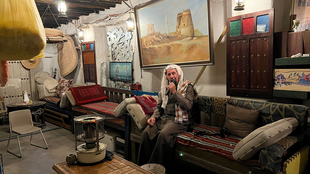 وأثناء حوارنا معه طالما شنّف أسماعنا بين حين وآخر بمواويل شعبية مستعرضا فنون الموال واليامال بأنواعه وسط اهتمام الحاضرين في اللقاء المصور.
