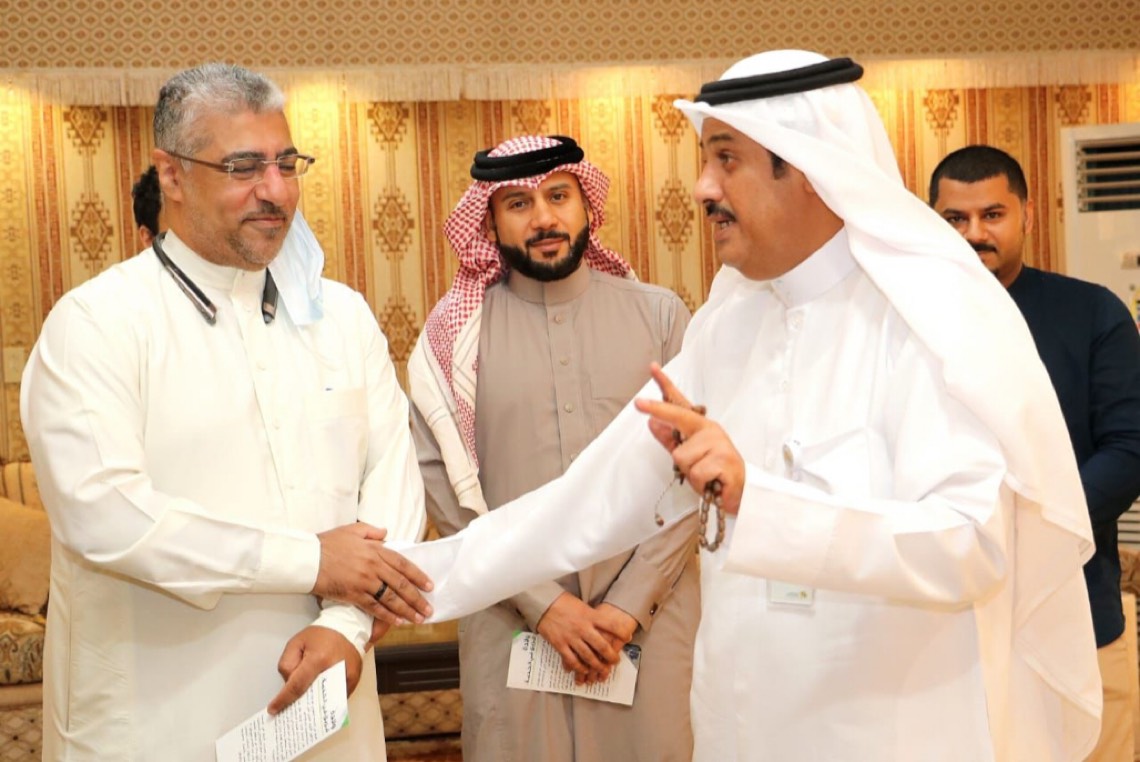 استمع مدير مركز التنمية الاجتماعية بالقطيف أحمد القباع، إلى نبذة تعريفية عن فريق «في الخدمة» التطوعي بقيادة قائدة الفريق الإعلامية «مريان الصالح»، وذلك خلال استقبالهم في مركز التنمية الاجتماعية بالقطيف.