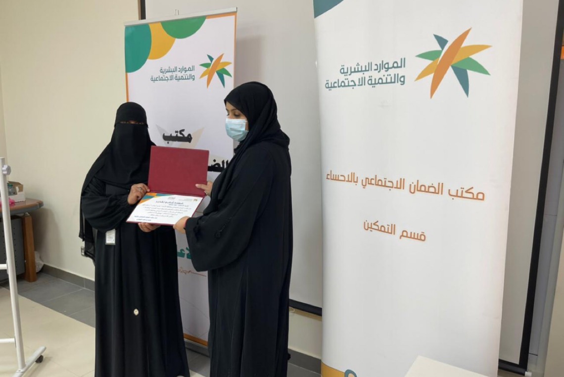 وفي الختام، قدمت إدارة مكتب ضمان الأحساء شهادة شكر وتقدير للمدربة نظيراً لجهودها المبذولة في تقديم هذه الدورة لبناتنا المستفيدات متمنين لهن التوفيق والنجاح.