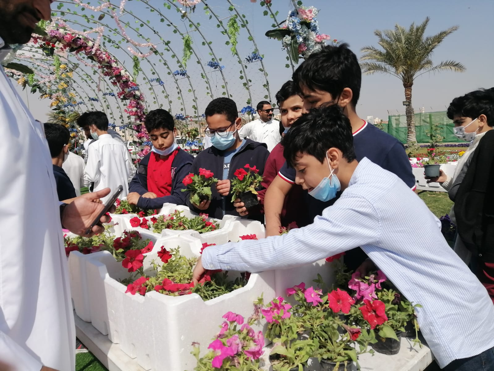 وتوافد عدد من مراكز رياض الأطفال للتعرف على أهمية المحافظة على الزهور والمشاركة في غرسها.