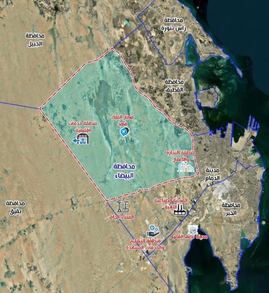 وأوضح في بيان صحافي: بأن محافظة البيضاء هي محافظة مستحدثة تضم بعض الأجزاء الواقعة غرب طريق دول مجلس التعاون ”أبو حدرية“ من مدينة الدمام.
