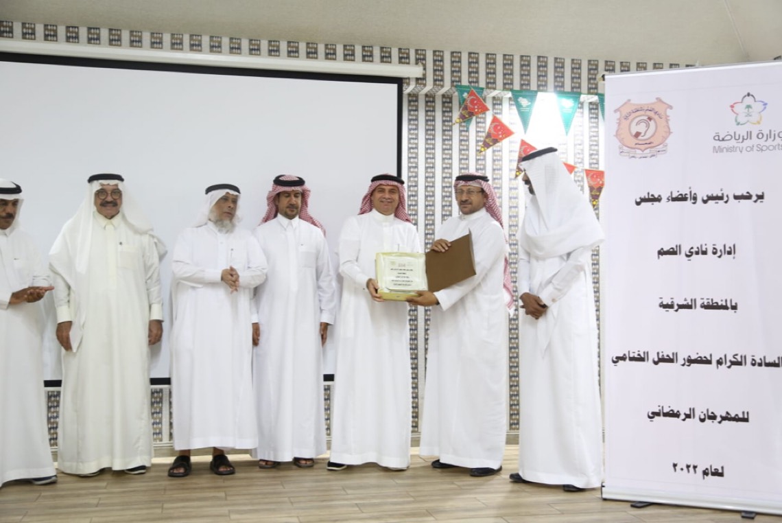 اختتم نادي الصم في المنطقة الشرقية، مساء أمس، مهرجانه الرمضاني لعام 1443 وتكريم المشاركين في مسابقة تحفيظ القرآن الكريم، وكذلك المشاركين في مختلف الألعاب الرياضية ككرة القدم والطائرة والبلاستيشن وتنس الطاولة.