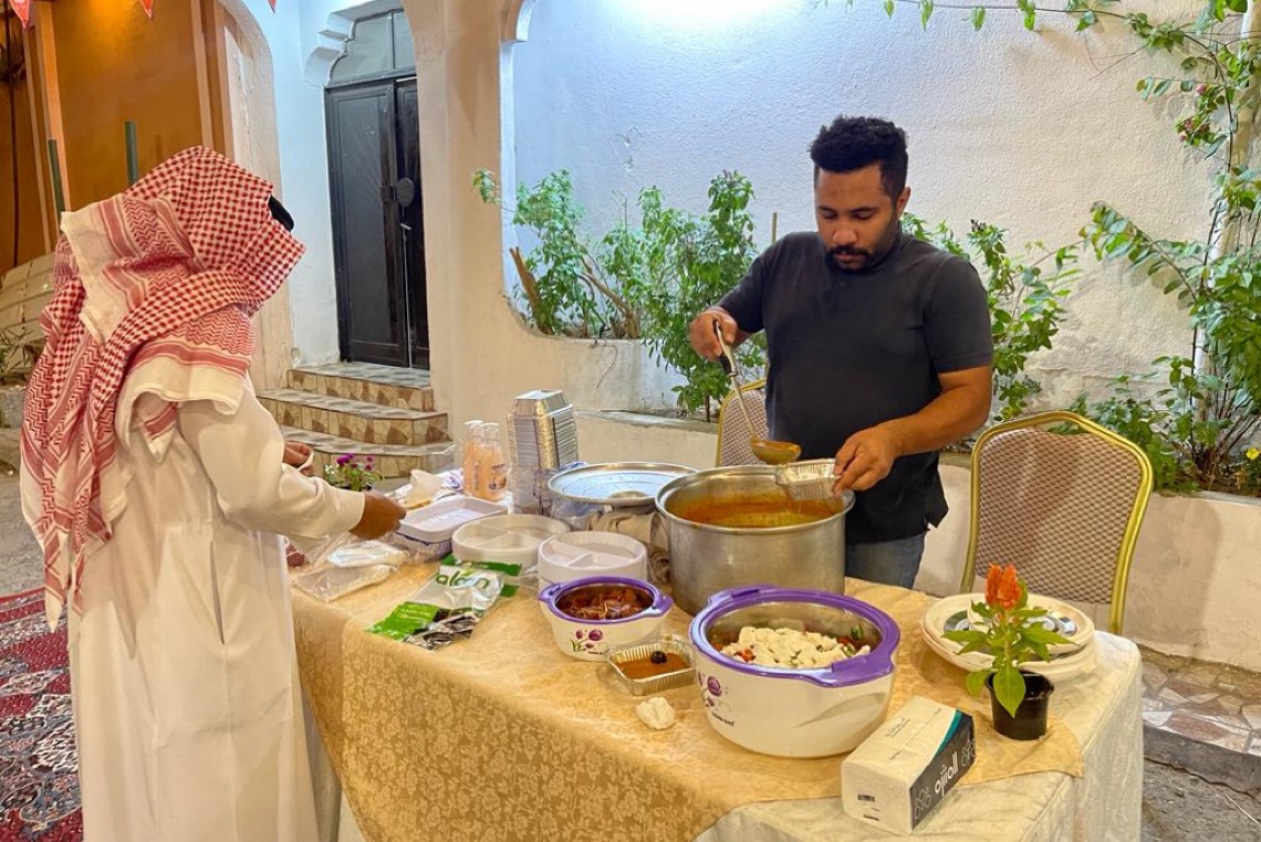 ولفت إلى أن عدد الحضور 200 شخصًا من الصغار والكبار، وتم جمع الأطباق ”بدون تكلف“ كل شخص احضر طبقًا واحدًا فقط.