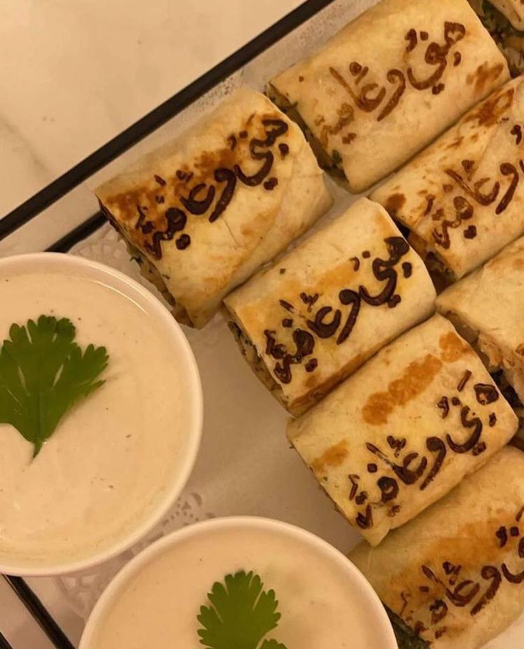 سمبوسة وفطائر مختومة بحروف عربية