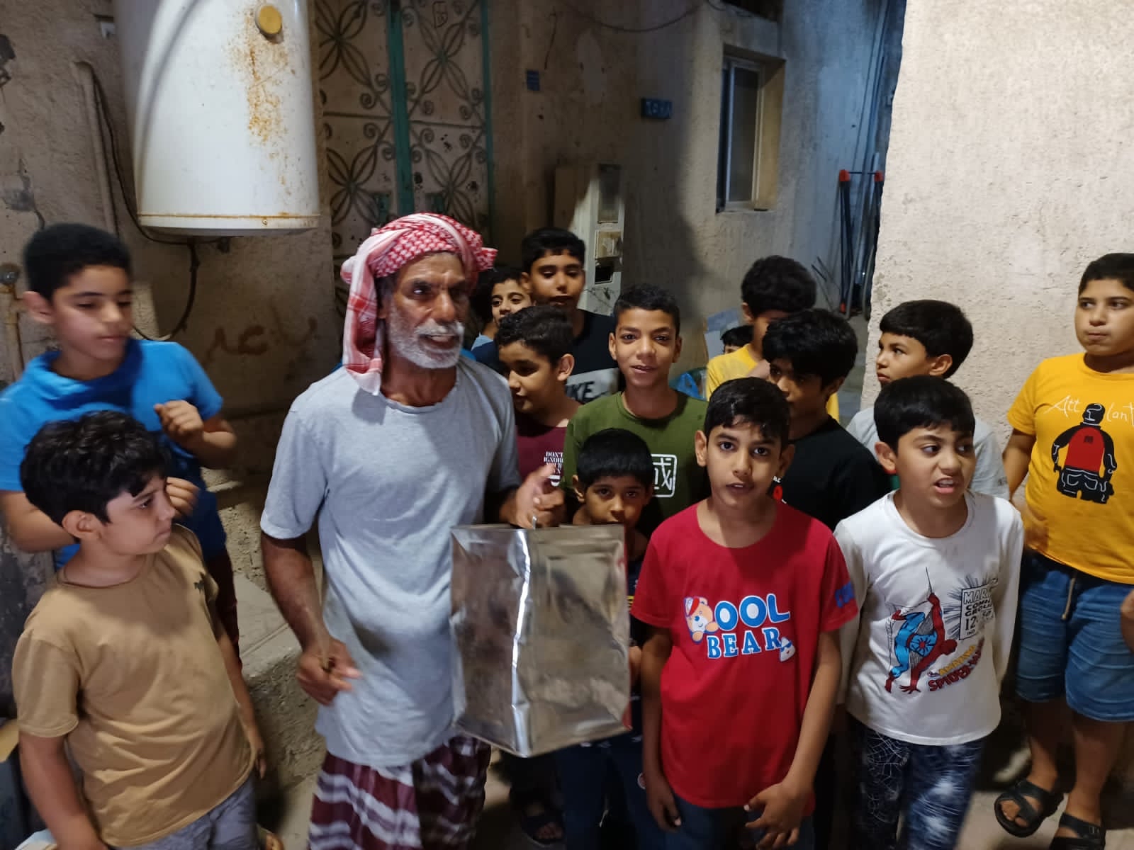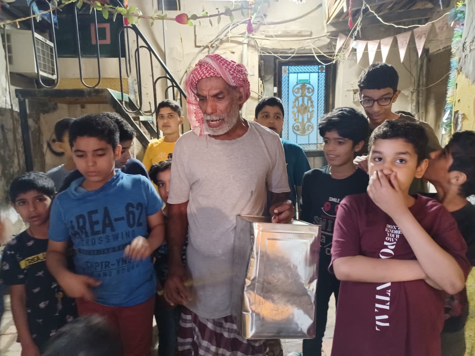 وشارك المسحر مهدي عبدالله آل خليل الأطفال بوداعية شهر رمضان المبارك في بلدة سنابس بمحافظة القطيف حتى ساعات الفجر الباكر.