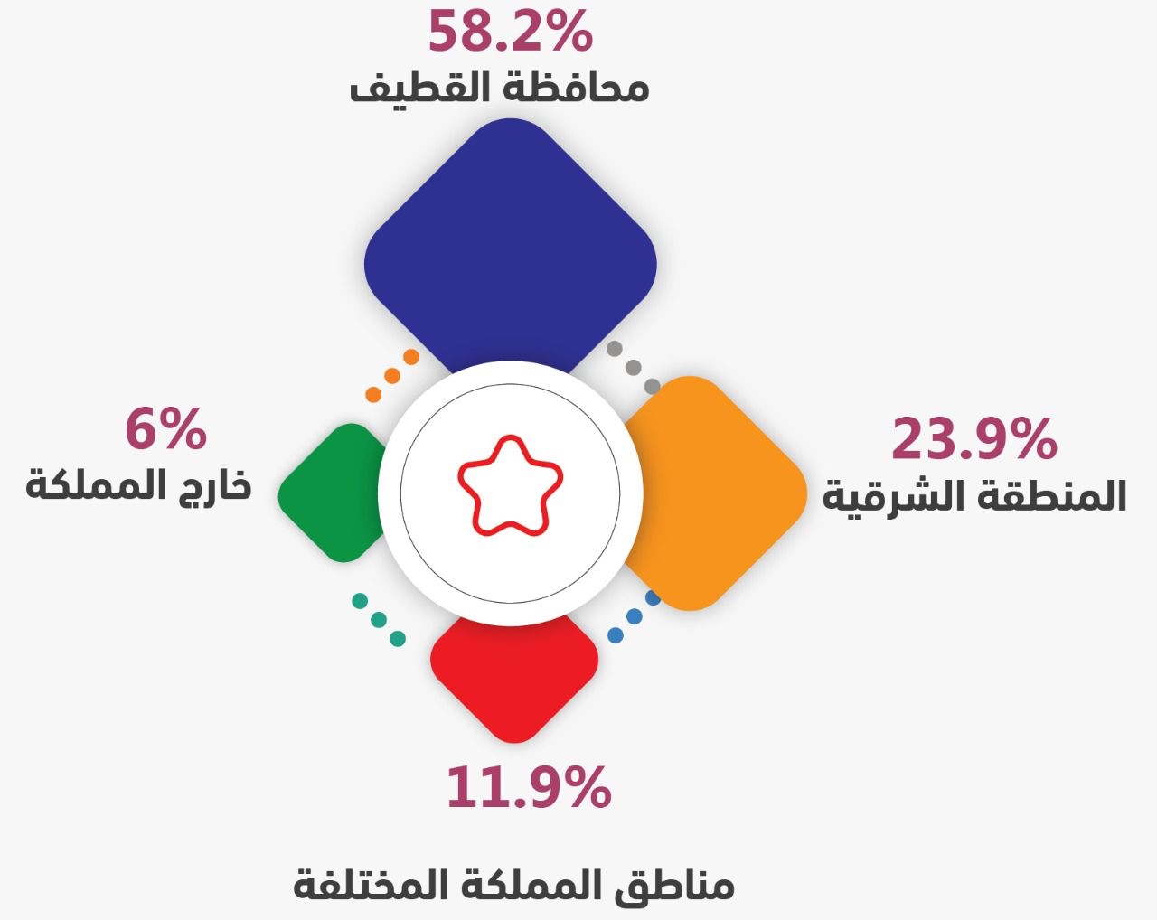 من ناحية المنطقة الجغرافية، كشف الاستطلاع أن أغلبية المشاركين هم من المنطقة الشرقية 82%، و12% من خارجها، مع وجود ارتفاع ملحوظ من المشاركين ممن هم خارج السعودية بنسبة بلغت 6%، وبينت نتائج الاستبانة أن أكثرية المشاركين هم ممن يحملون مؤهلا جامعيا 84%.
