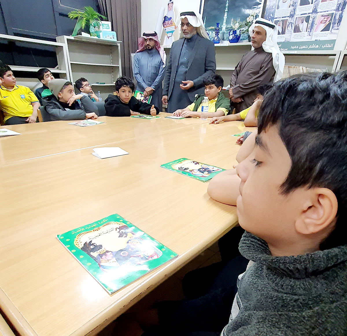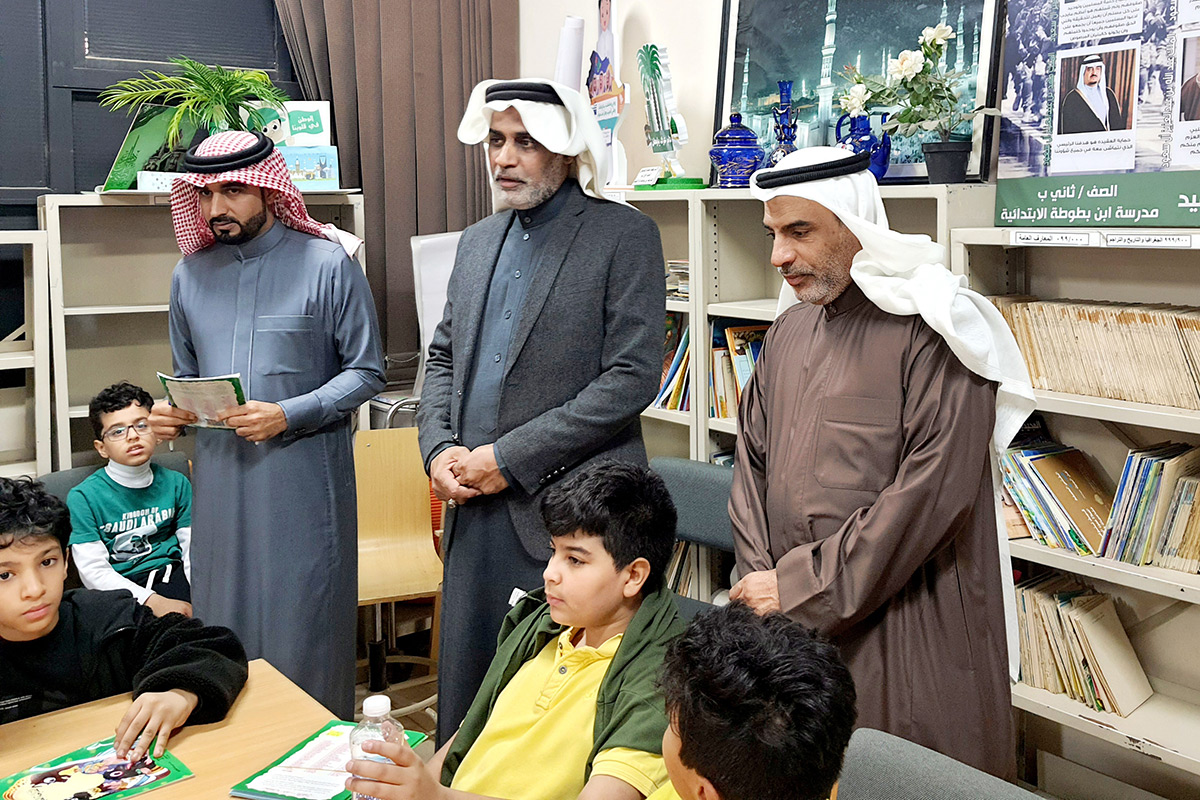 تفاعل عدد من طلاب الصفوف العليا، مع برنامج ”نادي القراءة“، الذي افتتحه محمد الرضوان مدير مدرسة ابن بطوطة الابتدائية بأم الحمام.