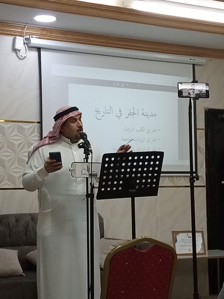 قدّم الباحث عبد الله اليوسف، عرضًا تاريخيًا عن مدينة الجفر، سلّط الضوء فيه على الكثير من القضايا الكبيرة والحوادث المهمة المتعلقة بهذه المدينة الجميلة الواقعة شرق الأحساء.