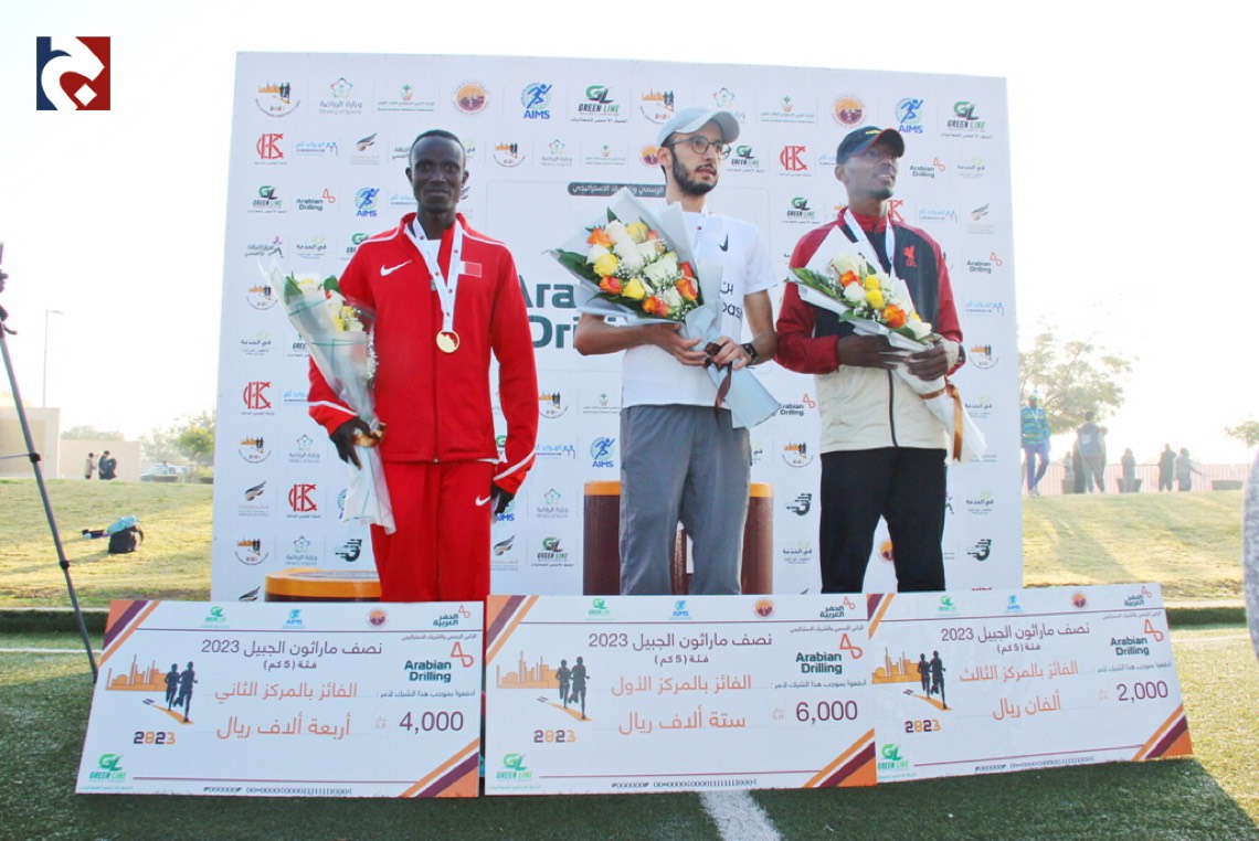 فيما فاز في سباق 5 كم ”رجال“ نعمان العسواي من المغرب، وجون كبت من البحرين، وتركي العواجي من السعودي،