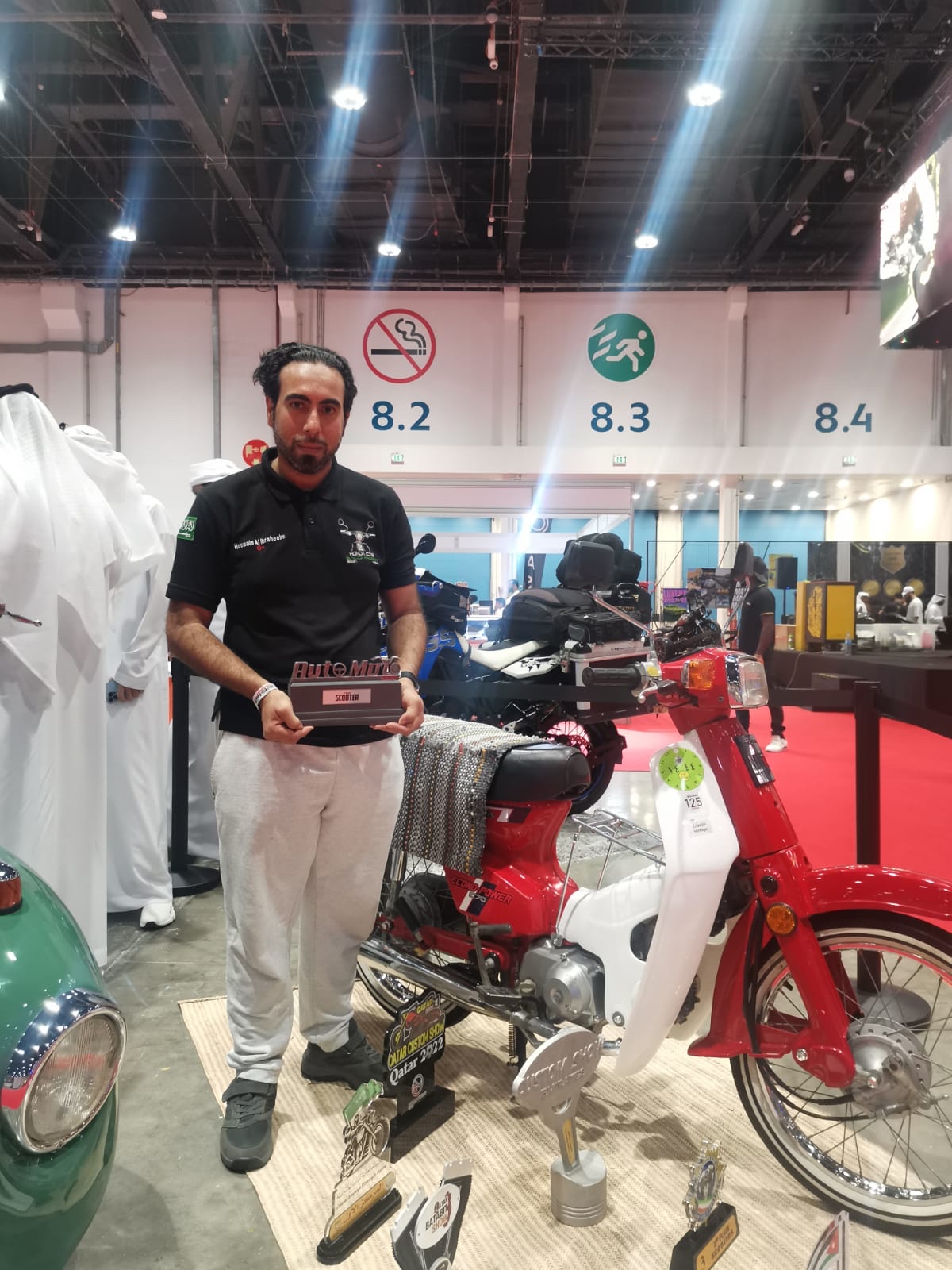 وأردف بأن آخر مشاركتين له لي في قطر ”كاستم شو“ قد حصل على المركز الثاني ومشاركة في الأردن التجمع الأول للسيارات والدرجات النارية في عمان.