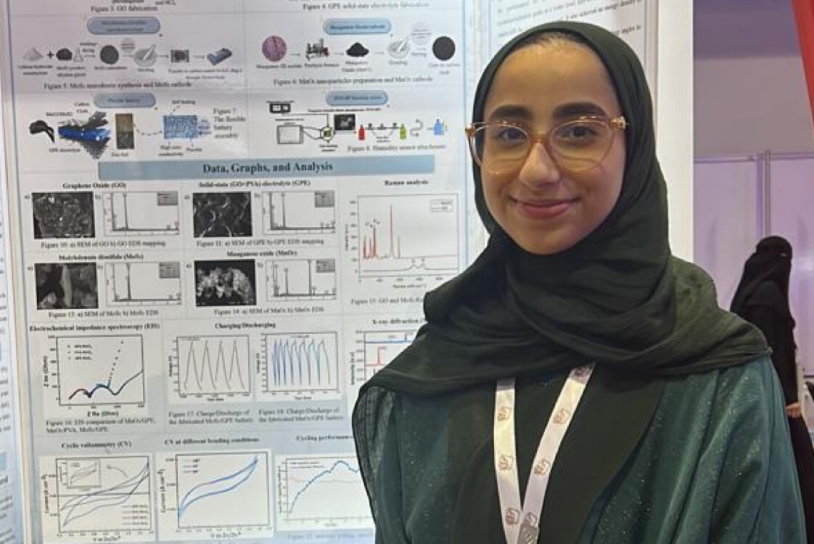 وتناولت الطالبة روز الجشي في مشروعها «بطاريات أيون الزنك الصلبة المرنة والمهيئة لإعادة الشحن للاستخدام في الإلكترونيات القابلة للارتداء» أي يمكن استخدامها في الملابس الذكية أو الأجهزة المرنة.