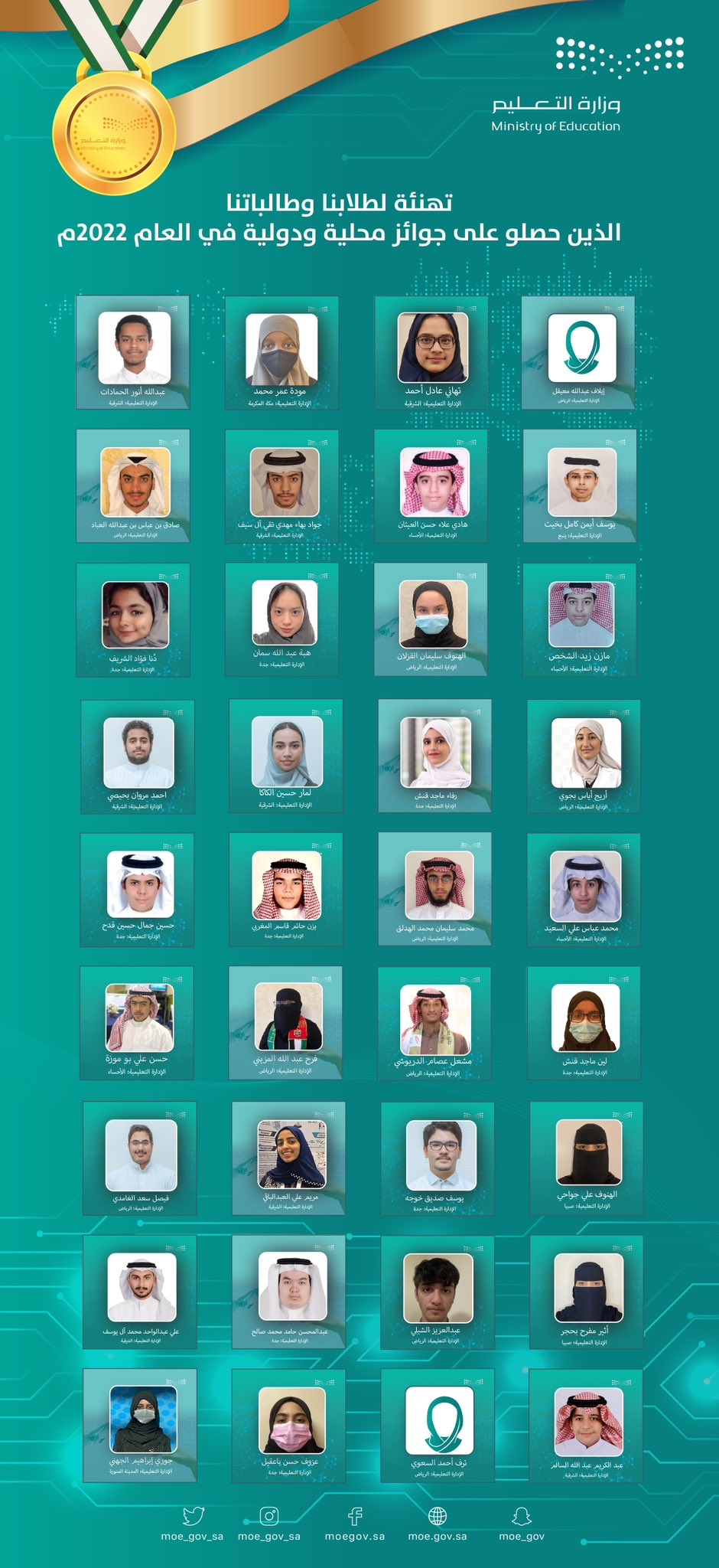 ونشرت المتحدثة باسم التعليم العام ابتسام الشهري، صور الطلاب الذين رفعوا اسم المملكة عالياً وعددهم 73 طالبا وطالبة، ليكتشف أن المنطقة الشرقية حصلت على نسبة 25% من أسماء الطلاب المكرمين وعددهم 18 طالبا.