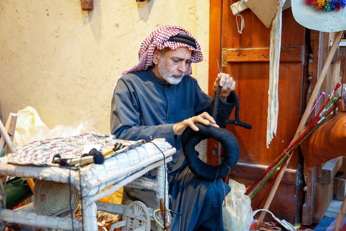 وفي الفريج التراثي، قال الحرفي عيسى العيسى «64 عاما»: إن عطاء النخلة مستمر بلا ملل، ونرتبط بها ارتباطا قويا فهي العنصر الهام في الحياة كونها مصدر رزقنا، ونستفيد من خاماتها بعد أن تتلف بعملية التدوير المفيدة، وأستفيد من الليف وتحويله عبر الأعمال اليدوية، والتي أصبحت مطلوبة من الزوار.
