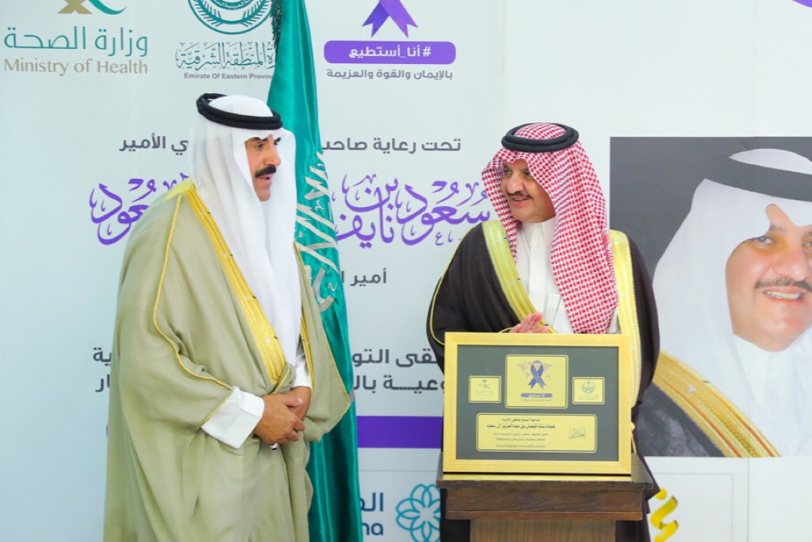 ثمَّن الأمير سعود بن نايف بن عبدالعزيز أمير المنطقة الشرقية، جهود «صحة الشرقية»، بالتعاون مع الجمعيات المتخصصة؛ للتوعية بأمراض السرطان، وسبل العلاج، وإبراز التقدم العلمي الكبير الذي حققته الجهات الصحية في المملكة في مجال علاج أمراض السرطان.