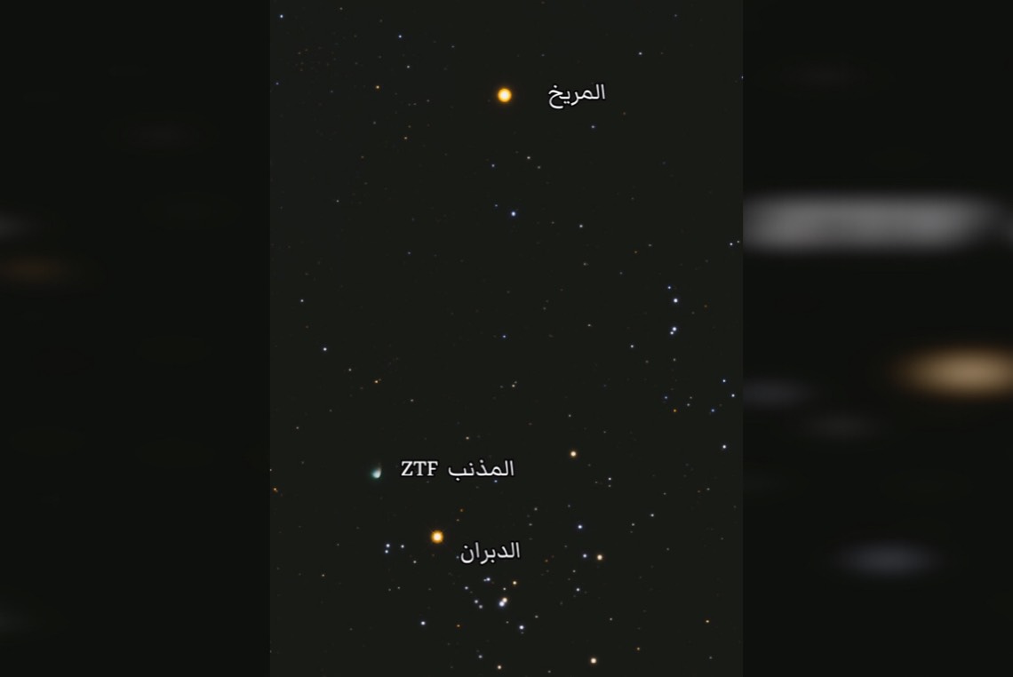 واختتم: سيظل المذنب يرصد في النصف الشمالي من الكرة الأرضية حتى نهاية أبريل 2023، بعد ذلك عندما سيصبح مشاهداً عبر التلسكوب فقط وسيضيع في شفق المساء.