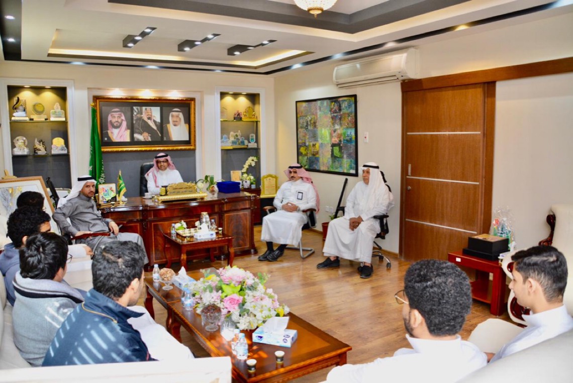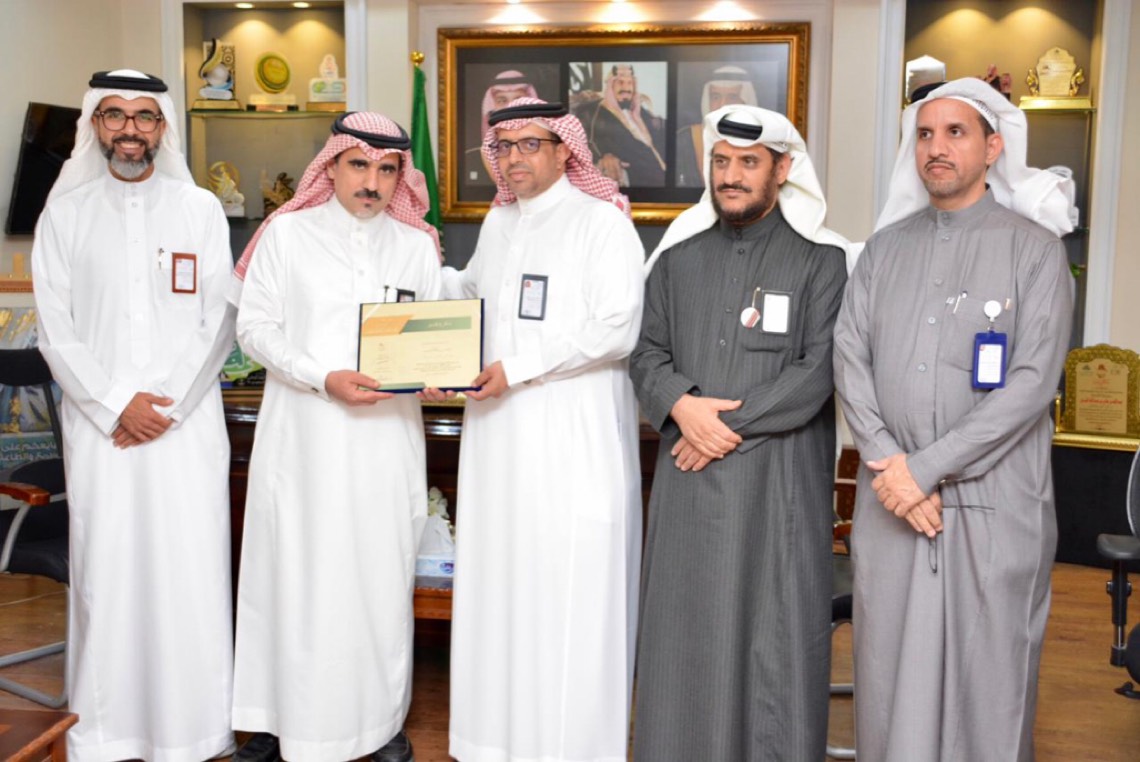 كرم مدير تعليم القطيف عبد الله القرني، في مقر مكتبه طلاب مجمع الخليل بن أحمد التعليمي - القسم الثانوي، نظير تنفيذهم مشروع بحث علمي في العقاقير وأضرار المخدرات.