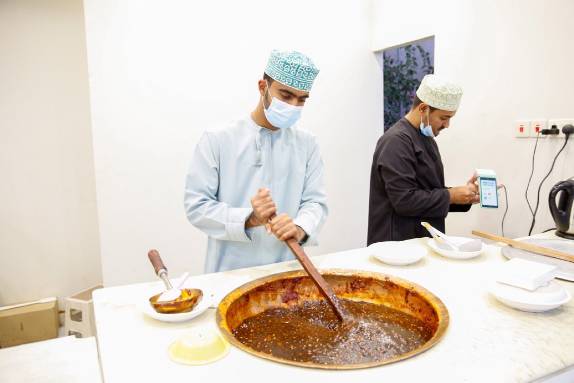 وتحظى الحلوى العمانية والتي تُصنع مباشرةً أمام الزائرين بإقبال لافت، وأشار ”مؤنس خلفان“ أحد المشاركين في إعداد هذه الحلوى، إلى أن التجهيز اليومي للحلوى يبدأ قبل فترة كافية ليتم إعدادها وتجهيزها أمام الزوار وبشكل مباشر.