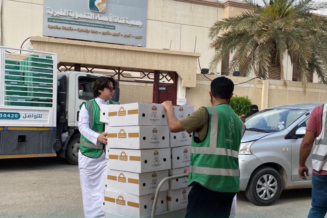 وأشارت إلى أن عمليات توزيع السلال الغذائية تمت بمشاركة موظفات الجمعية وفرق المتطوعين