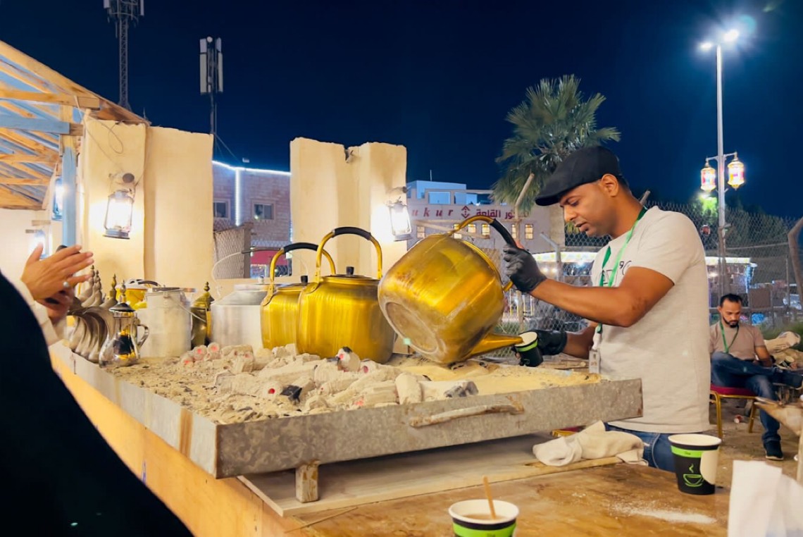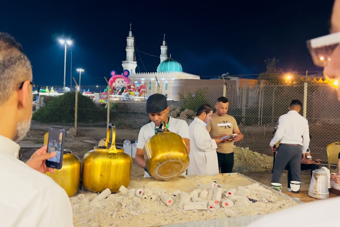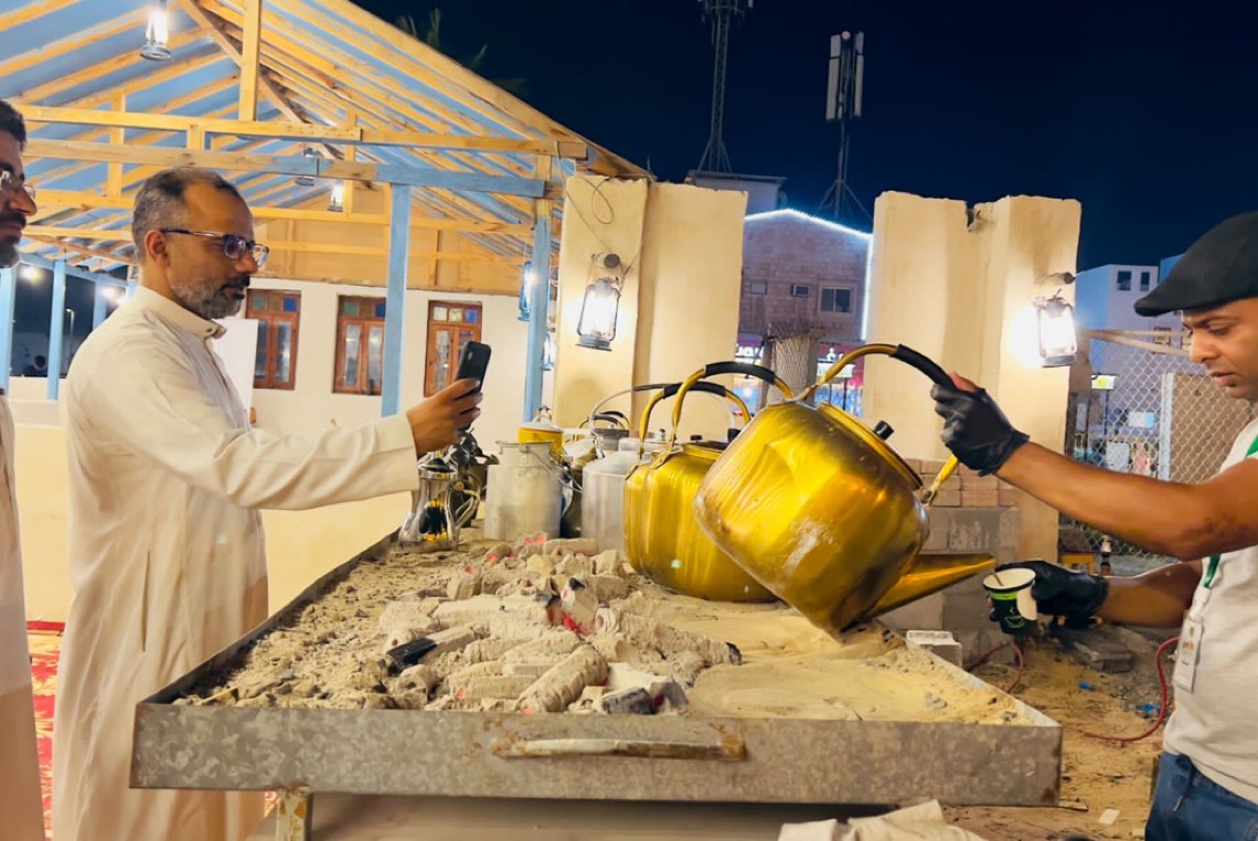 وأوضح لصحيفة ”جهات الإخبارية“ أنه يعمل في الضيافة منذ 20 عامًا، ويشارك في أكثر مهرجانات المنطقة، ويستمتع بالعمل كثيرًا، خاصةً أنه يربطه بالكثير من الناس.