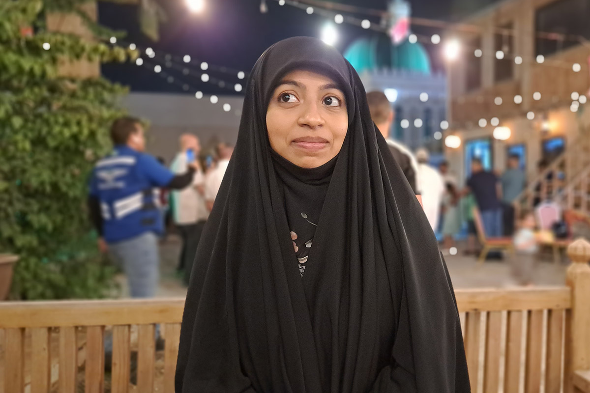 - وتقول إنها متدّينة بطبعها ”لكن منفتحة“ وحجابها التقليدي ليس عائقا.