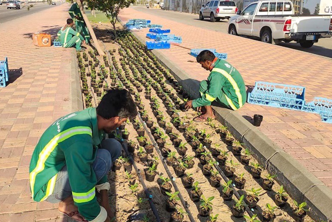 القطيف تتألق لاستقبال العيد.. 170 ألف زهرة وتنظيف المساجد